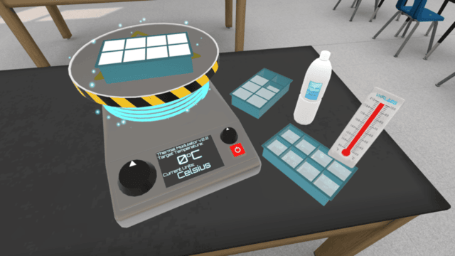 This VR laboratory immerses students in the exploration of physical state changes in matter. Learners investigate how energy impacts solid, liquid, and gas transformations.
